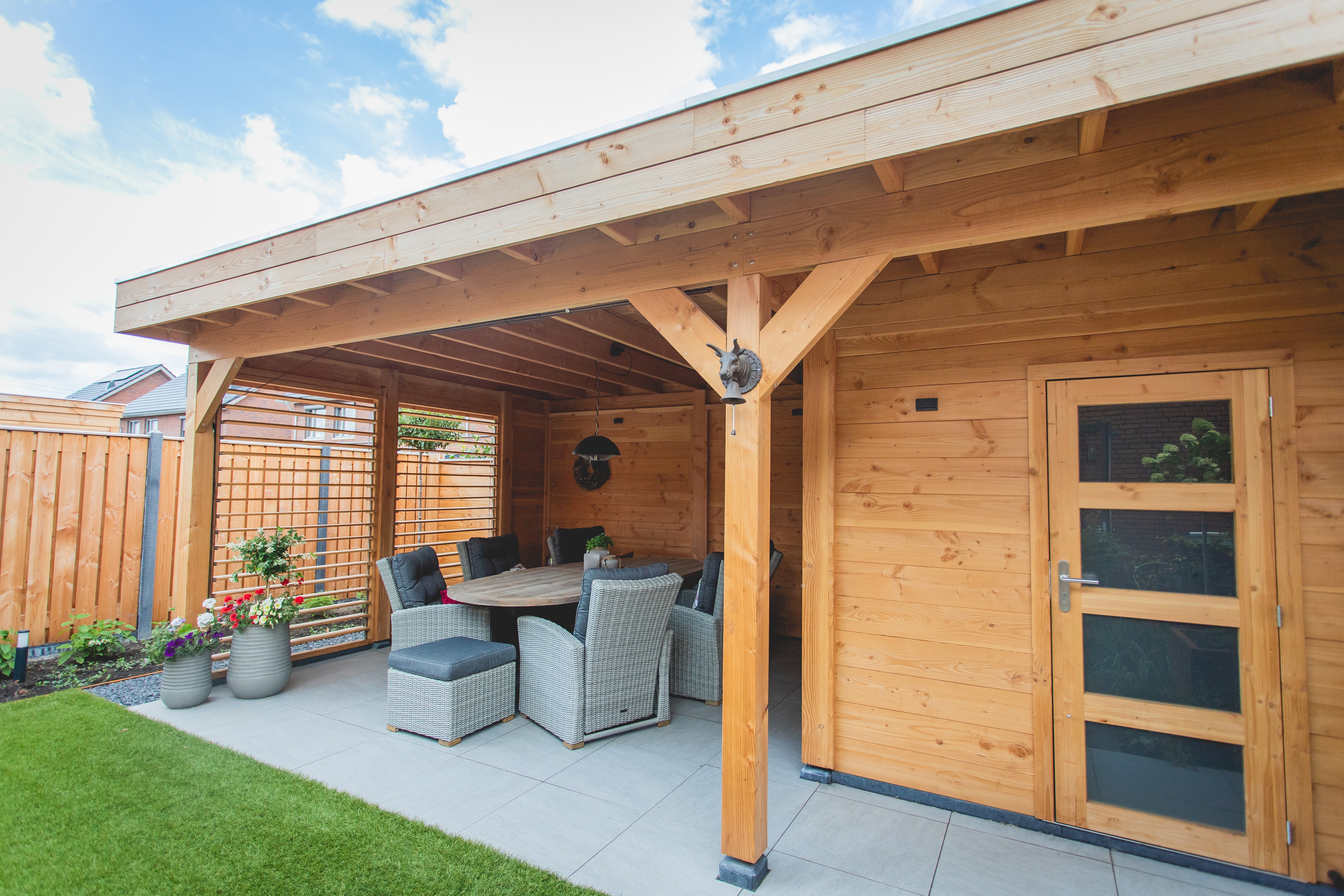 De plek in onze tuin waar we als het maar enigszins kan ‘s avonds kunnen zitten om tv te kijken en tevens een berging voor onze fietsen. Het resultaat is schitterend en een absolute upgrade van onz...