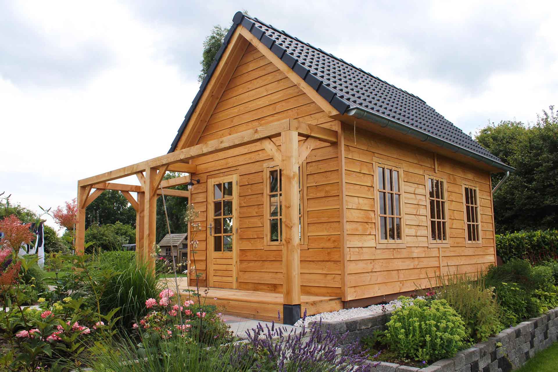 Houten buitenverblijf met zadeldak laten maken